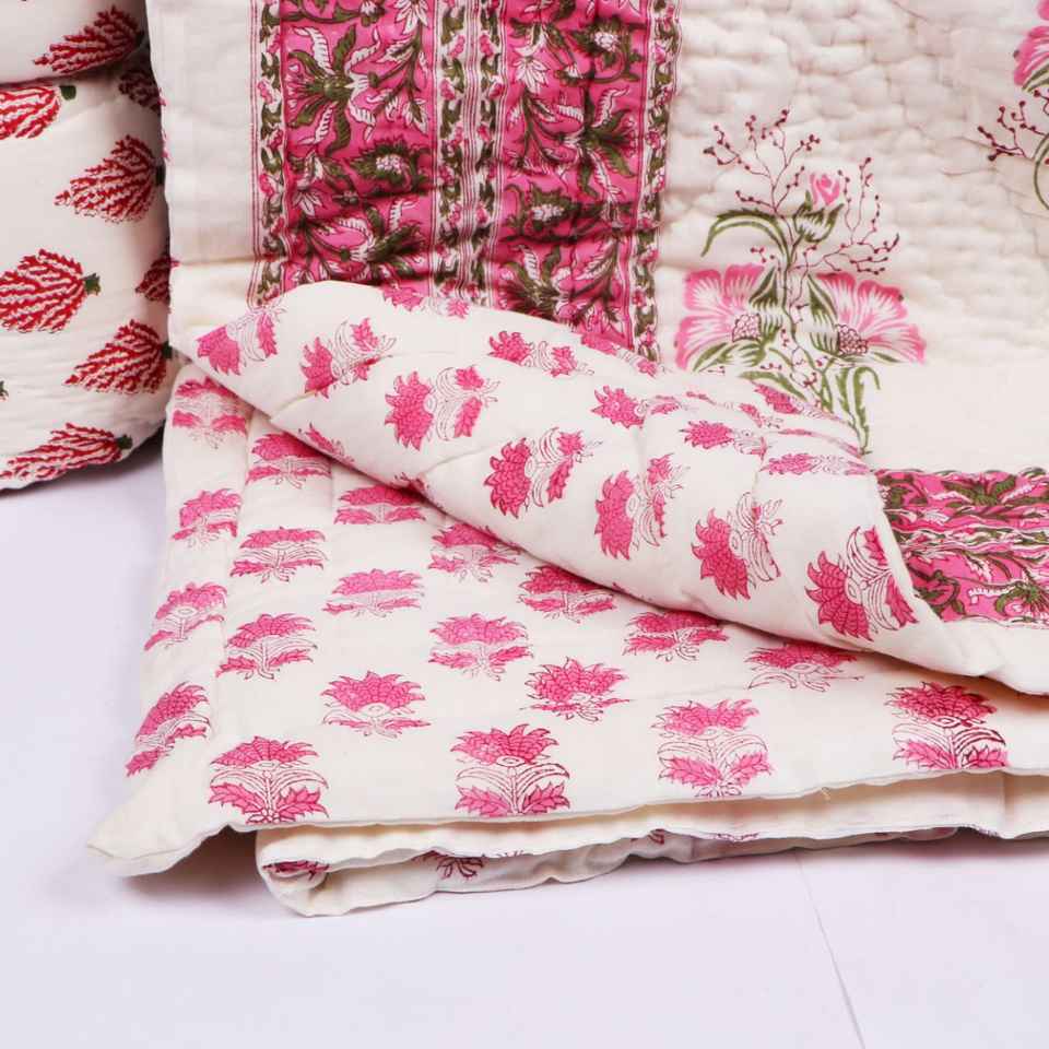 Hand Block Printed 100% Cotton Double Size Bed Cover Quilt for Hotel & Dorm Room Use All-Season