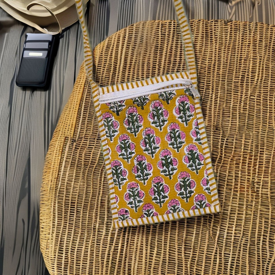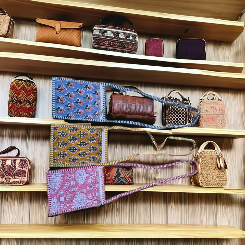 Hand Block Printed Eco-Friendly Full Cover Case Style Bohemian Small Multicolor Sling Bag Cotton Fabric Handmade Customized
