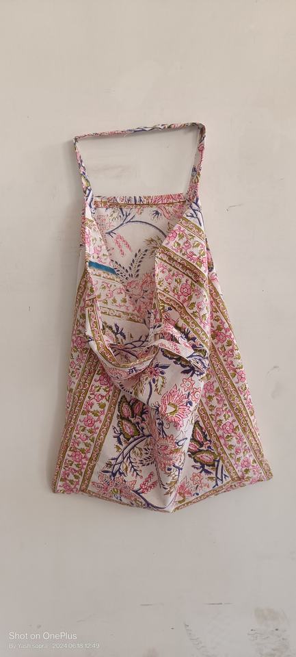 Hand Block Printed Cotton Beach Bag Quilted Large Gypsy Tote Purse Bohemian Carry Shoulder Bag