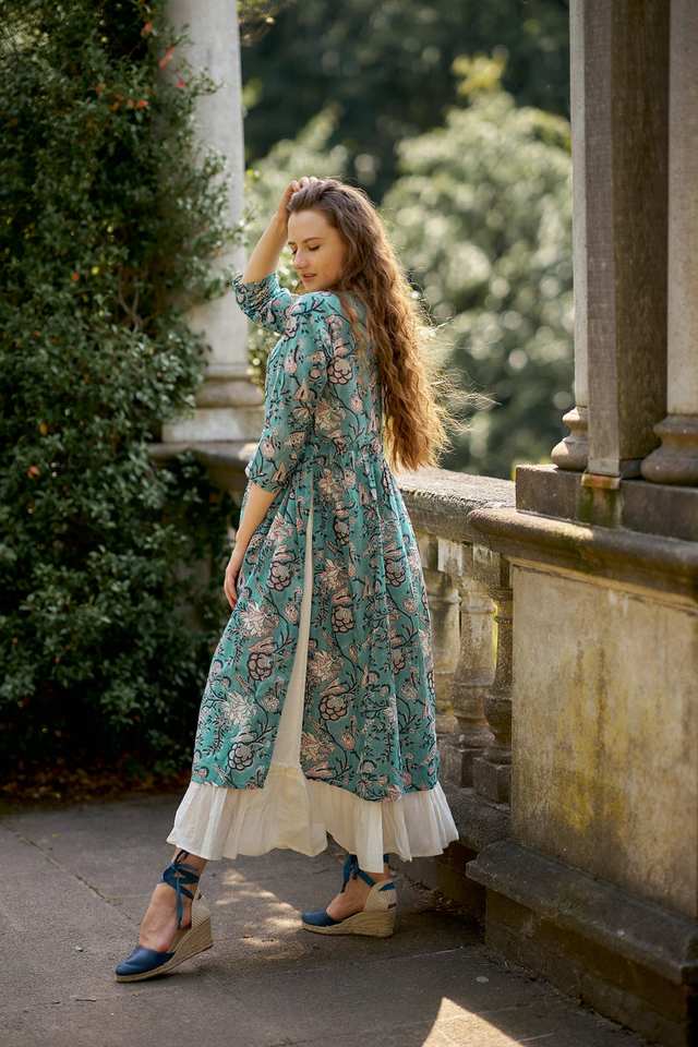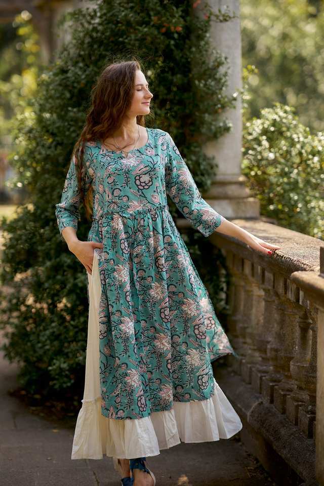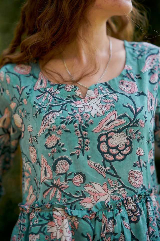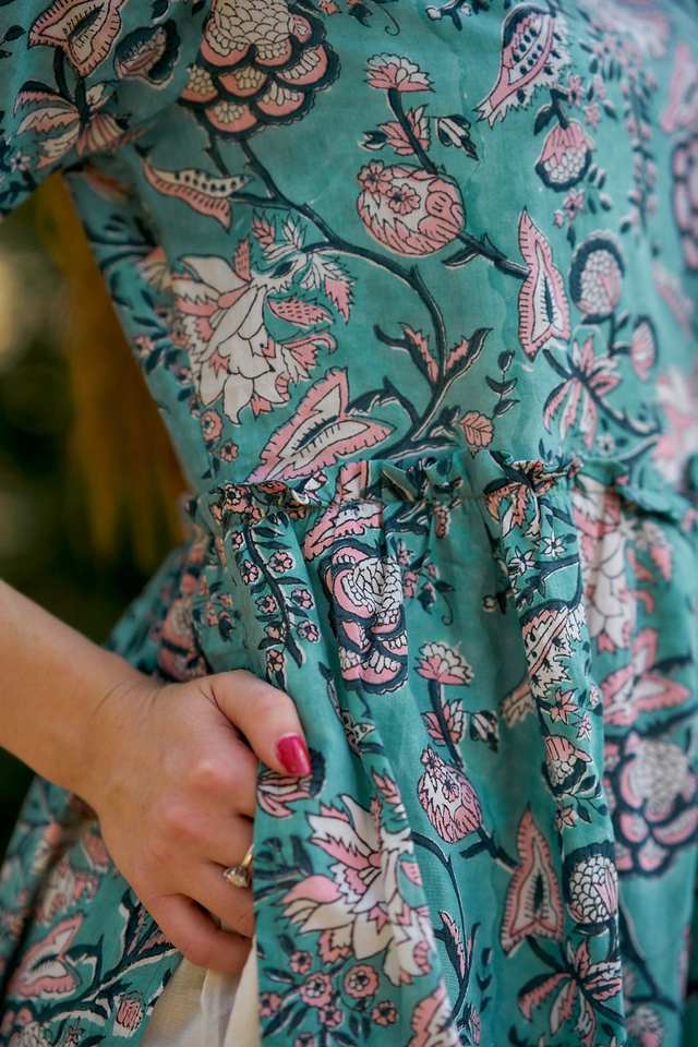 Hand Block Printed Cotton Kamalani Dress Bohemian Floral Style Pure Cotton Casual Occasional Ethical Fashion Outfit For Women