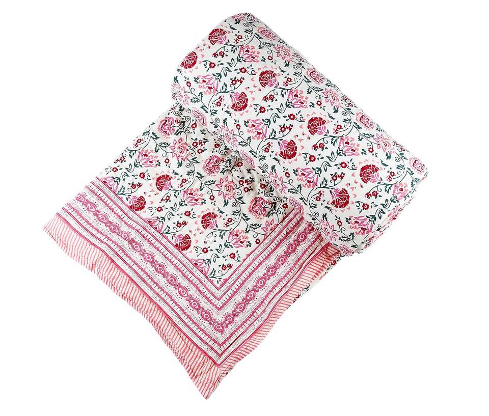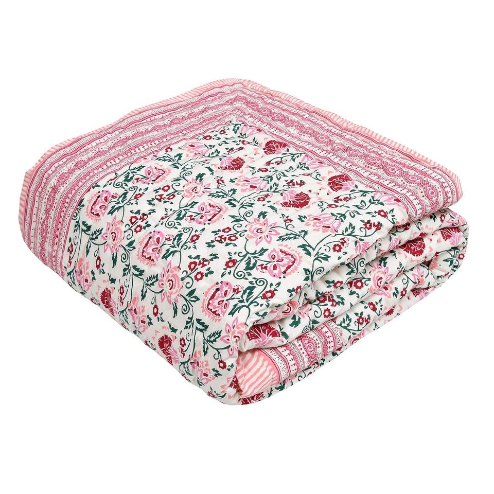 Hand Block Printed Cotton King Size Quilt Rajai 90 Inch X 108 Inch PINK JAAL Best High Quality Collection Wholesale Prices