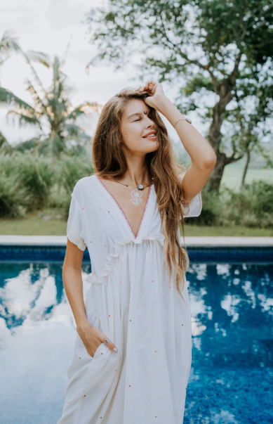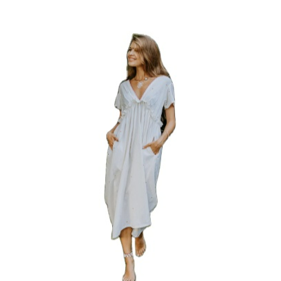 Hand Block Printed Cotton Maxi Dress for Women Casual V-Neck T Shirt Stylish Ankle Length with Sexy Beach Cover