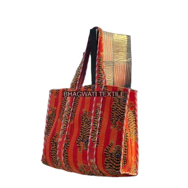 Hand Block Printed Cotton Quilted Reversible Tote Bag, Green Velvet Quilted Customize Women Shoulder Tote Bags with Custom Print