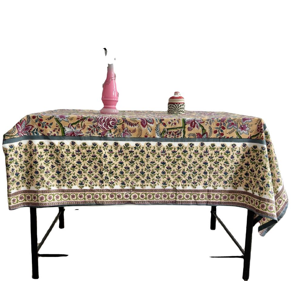 Hand Block Printed Cotton Tablecloth Floral Stripes Boho Dining Table Linen Ethnic Home Decor for Best Price