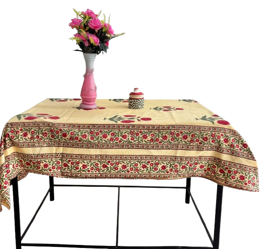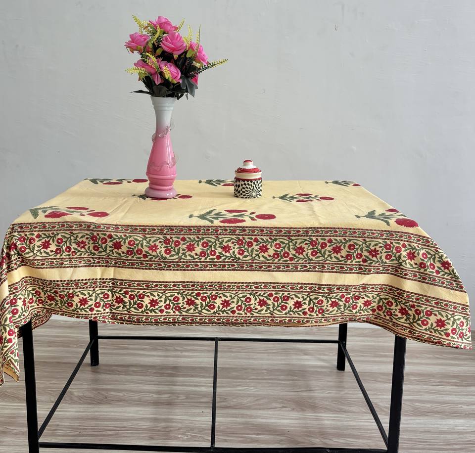Hand Block Printed Cotton Tablecloth: Floral Red & Green Boho Decor Dining Table Linen Ethnic Home Decor for Best Price