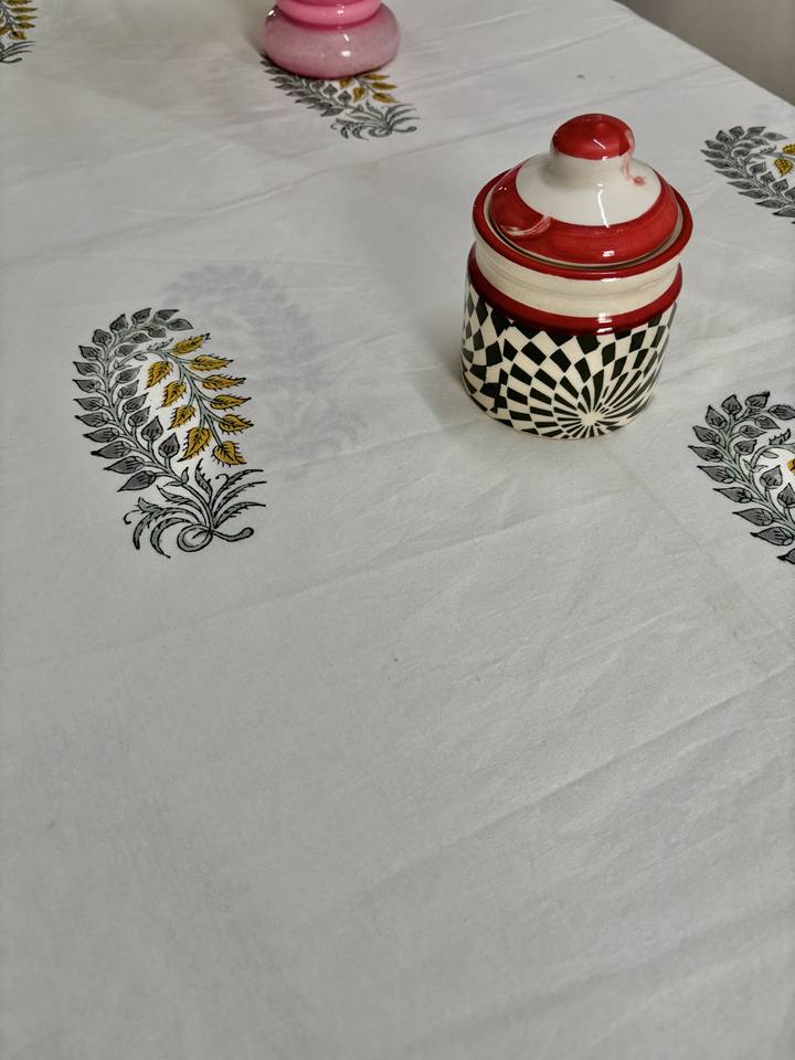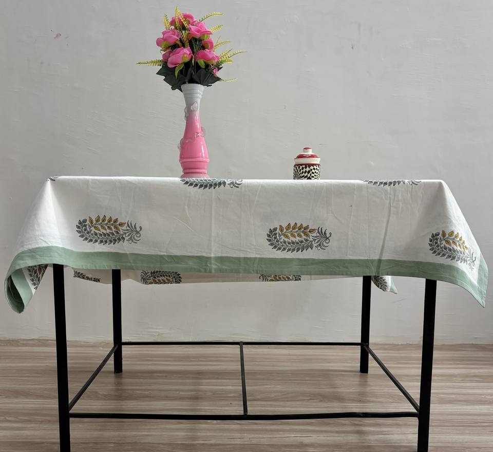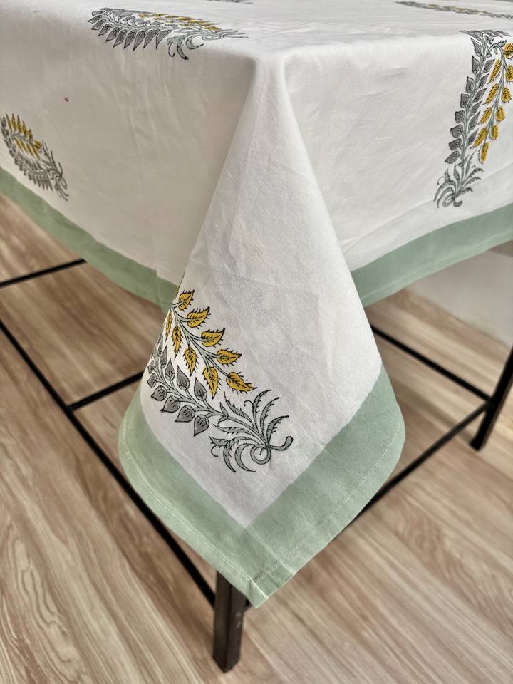 Hand Block Printed Cotton Tablecloth: Floral Stripes, Boho Dining