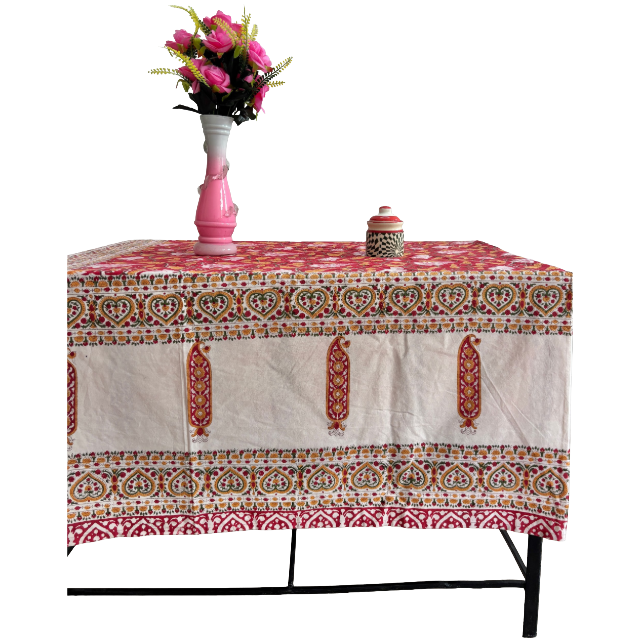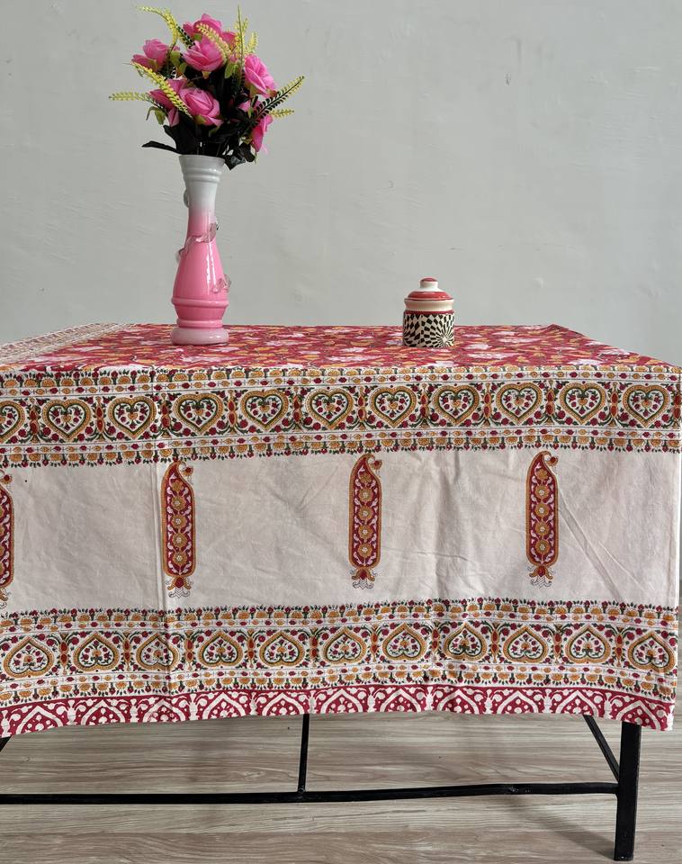 Hand Block Printed Cotton Tablecloth Red Heart Paisley Boho Dining Room Decor for Best Wholesale Price