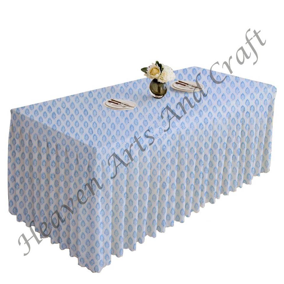 Hand Block Printed Cotton Traditional Rectangle Dinning Pleated Table Cloth For Wedding Events Home Party And Home Decor