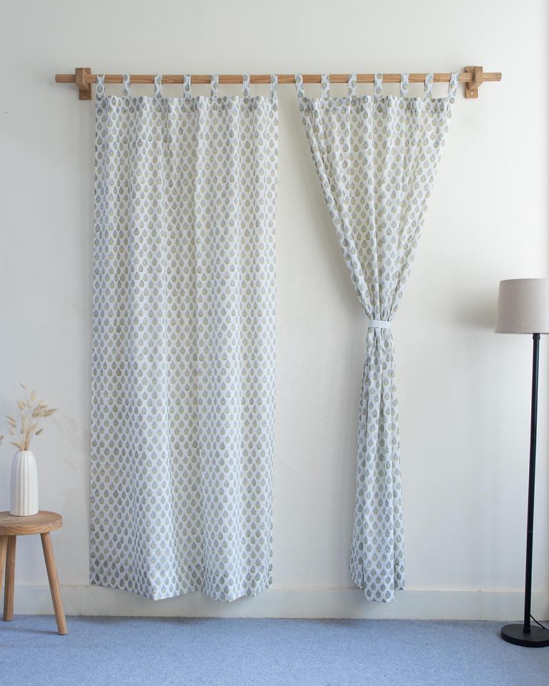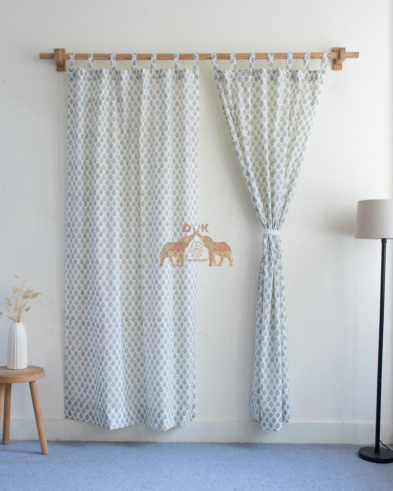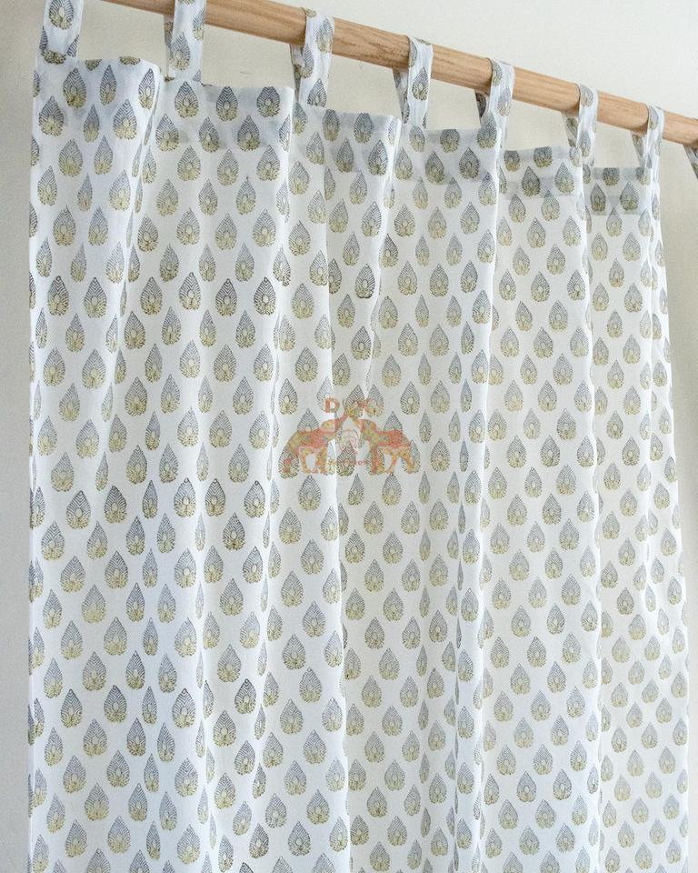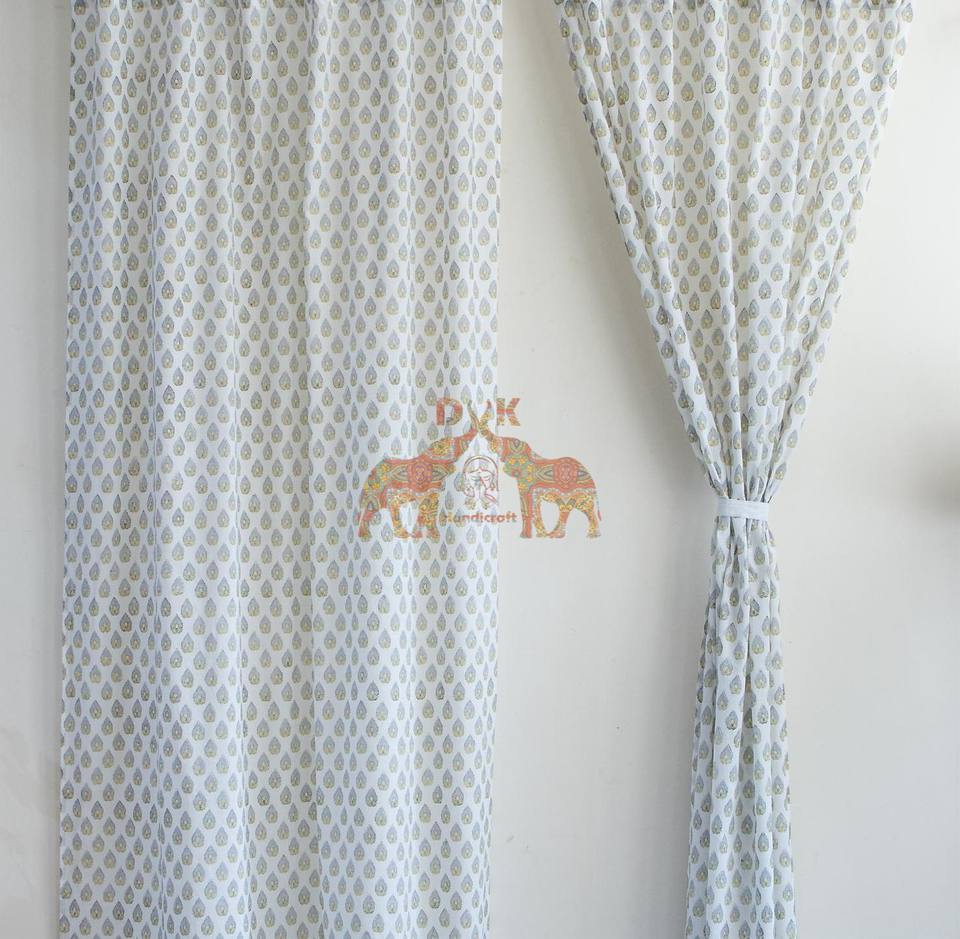 Hand Block Printed Curtains Floral Cotton Bohemian Style Curtain Set Elegant Handmade Drapes For Living Room Bedroom