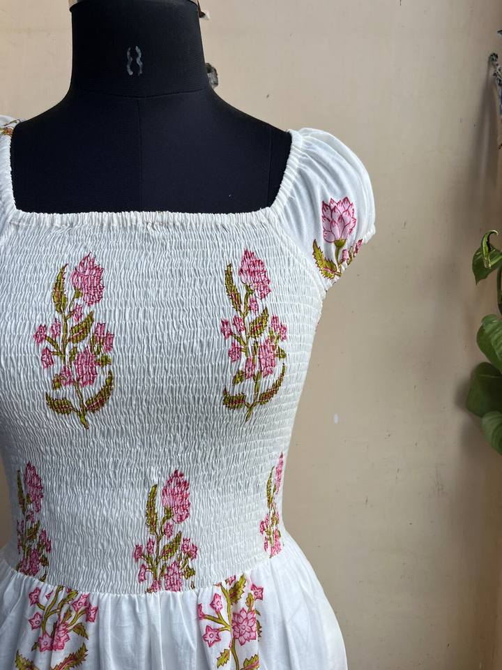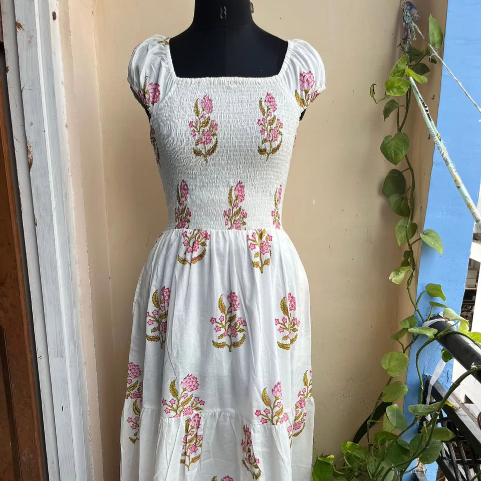 Hand Block Printed Dress Block Print Tunics Hand Indian Cotton Long Gown Indian Cotton Printed Dress