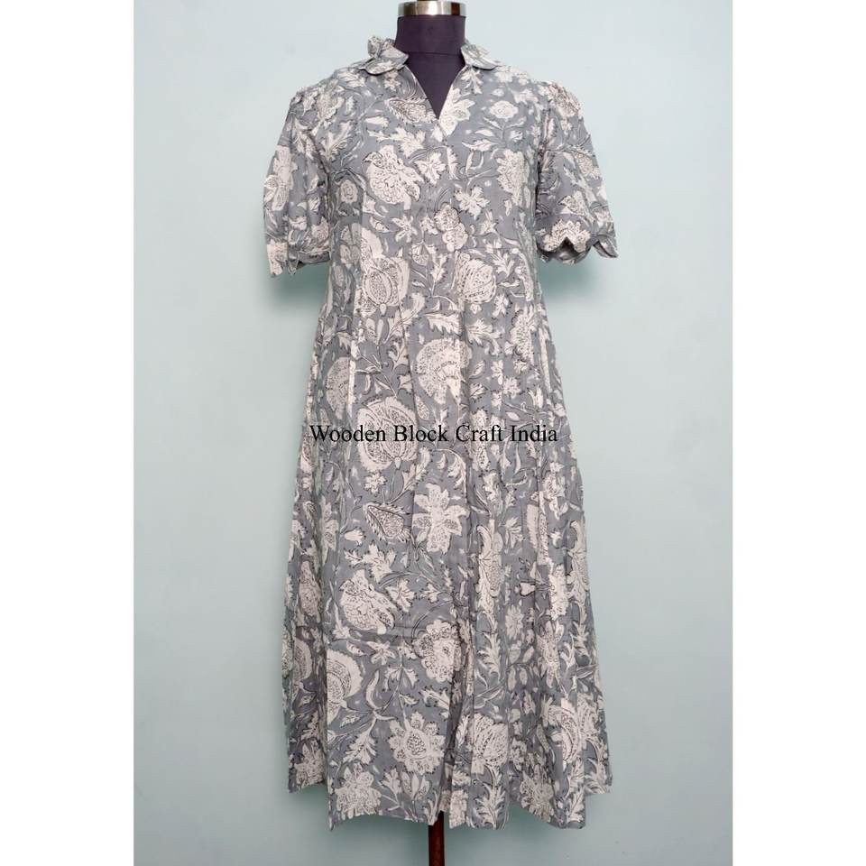 Hand Block Printed Dress Indian Cotton Long Gown Indian Wedding Long Dress Summer Wear Clothing for Girl 100% Cotton Dress