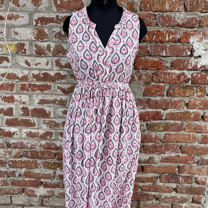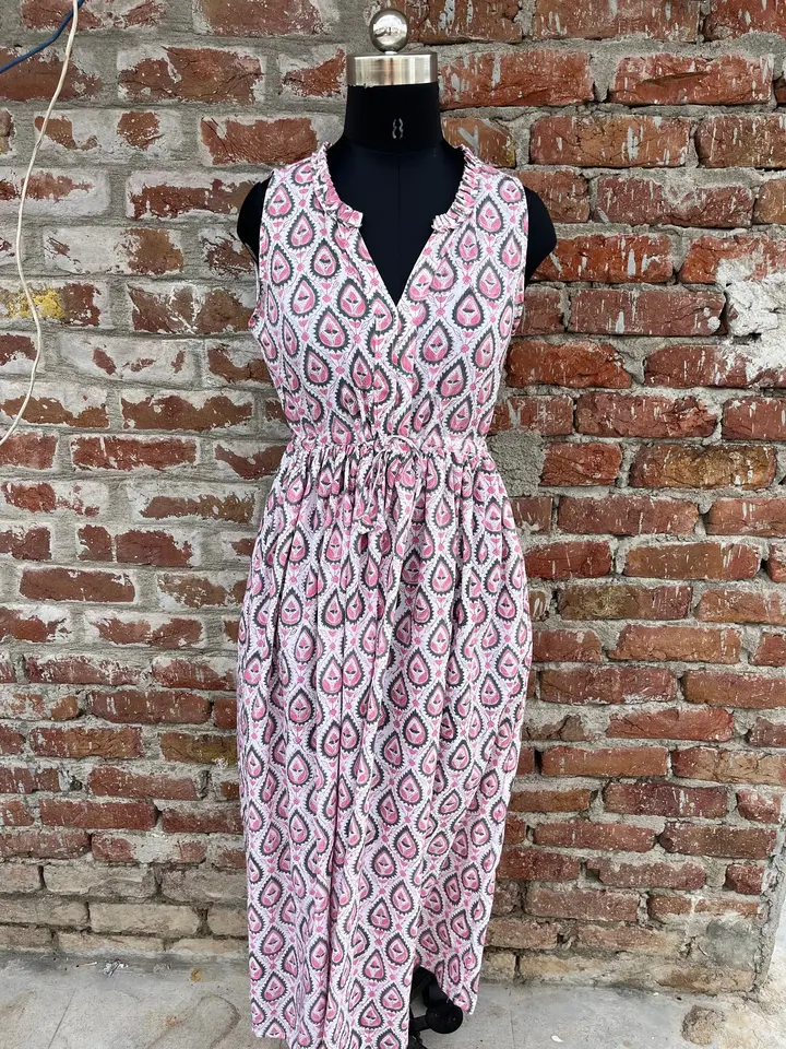 Hand Block Printed Dress Indian Tunics Hand Printed Indian Cotton Long Gown Indian Cotton adjustable strap sleeveless dress