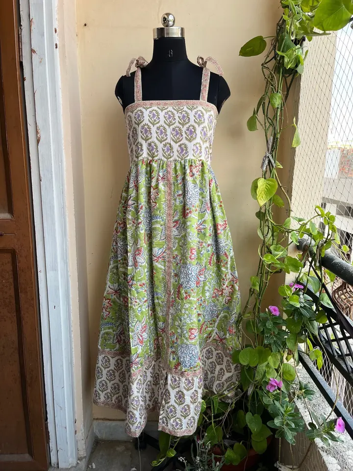 Hand Block Printed Dress Indian Tunics Hand Printed Indian Cotton Long Gown Indian Cotton adjustable strap sleeveless dress