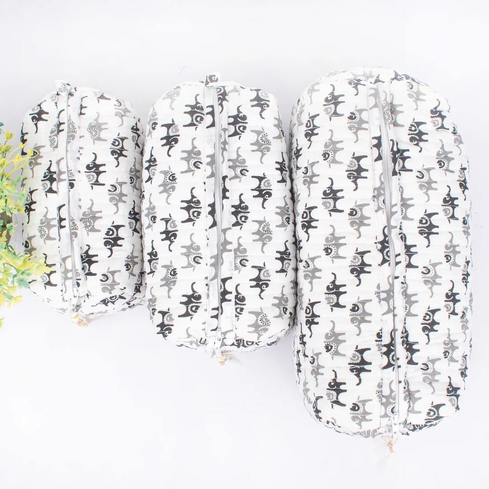 Hand Block Printed Eco-Friendly Large for Case Waterproof Zipper Cosmetic Bag with Pockets Travel Bag