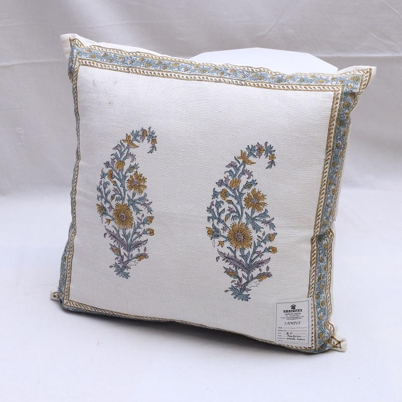 Hand Block Printed Floral Cushion Made from 100% Organic Cotton Rectangle Throw Pillow for Eco-Friendly and Artistic Home Decor