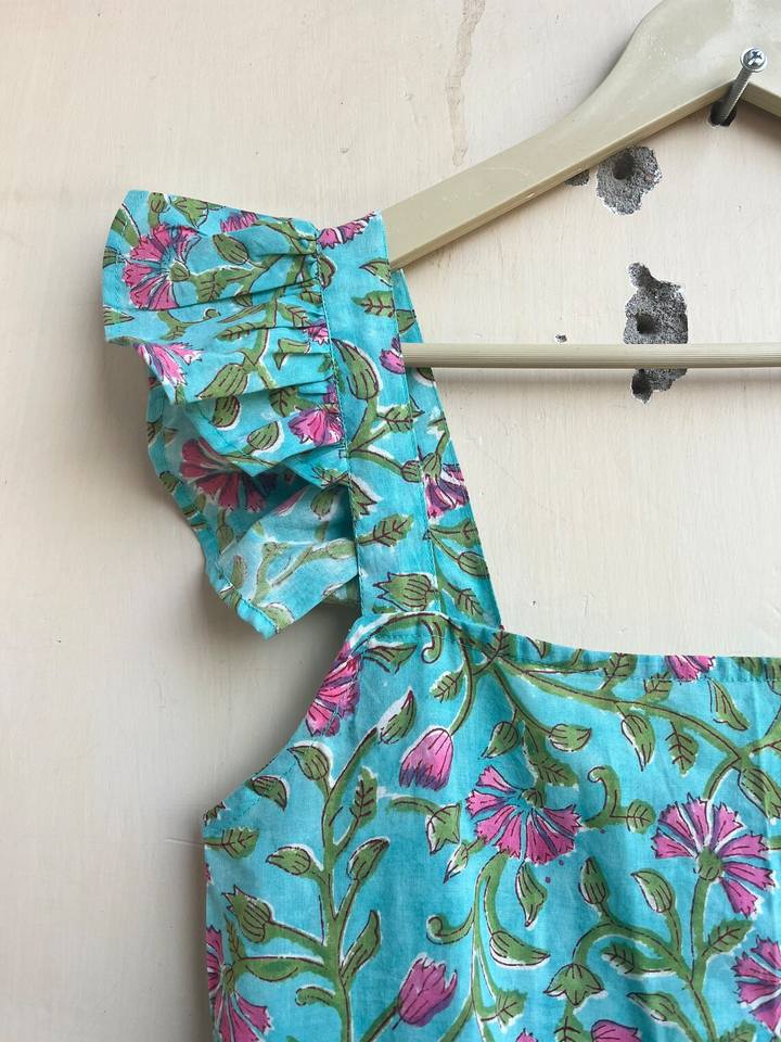 Hand Block Printed Indian Cotton Dress Daily Wear Long Gown with Natural Waistline Eco-Friendly Hand Printed Tunic