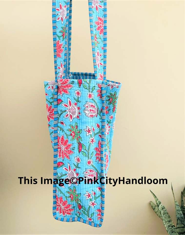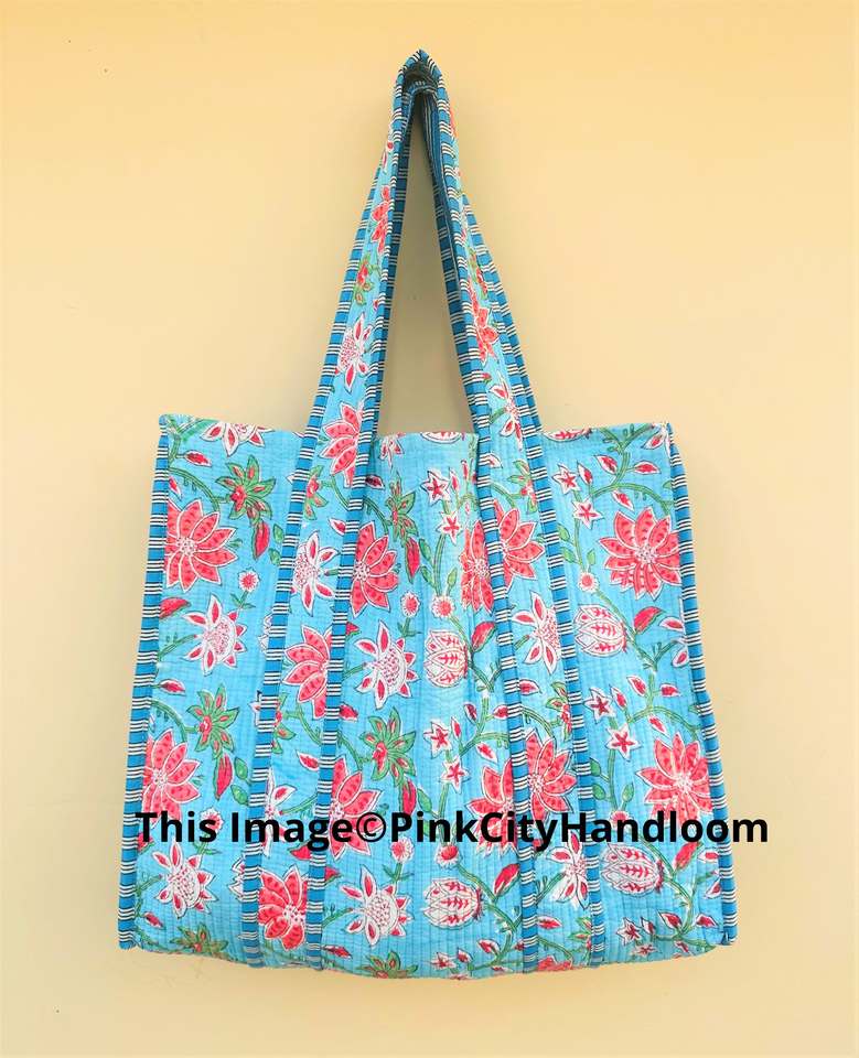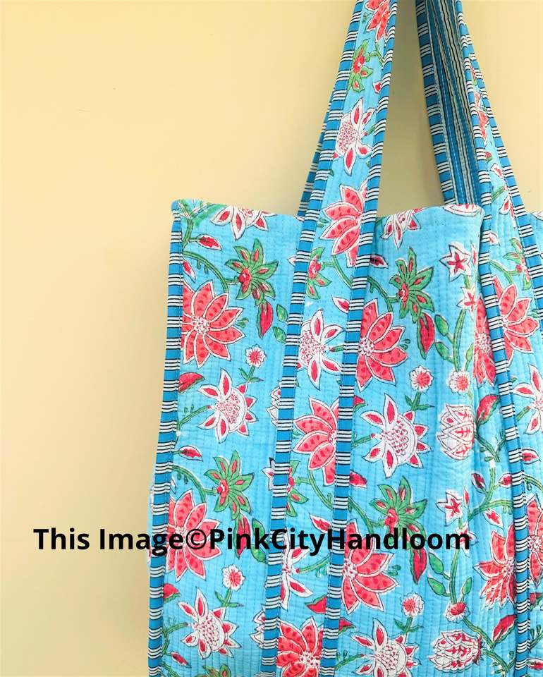 Hand Block Printed Indian Cotton Shoulder Bag Handmade Quilted Summer Tote Bag for Women Women's Shopping Tote Bag