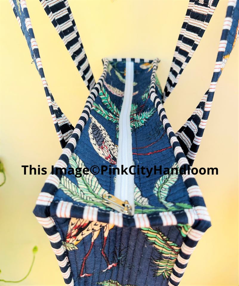 Hand Block Printed Indian Cotton Quilted Tote Bag for Women Canvas Lining Handmade Shoulder Bag for Summer and Winter Shopping