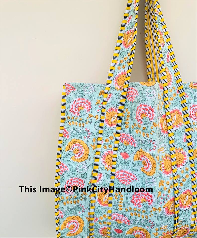 Hand Block Printed Indian Handmade Cotton Shopping Tote Bag Women Tote Bag Handmade Block Printed Quilted Shoulder Bag