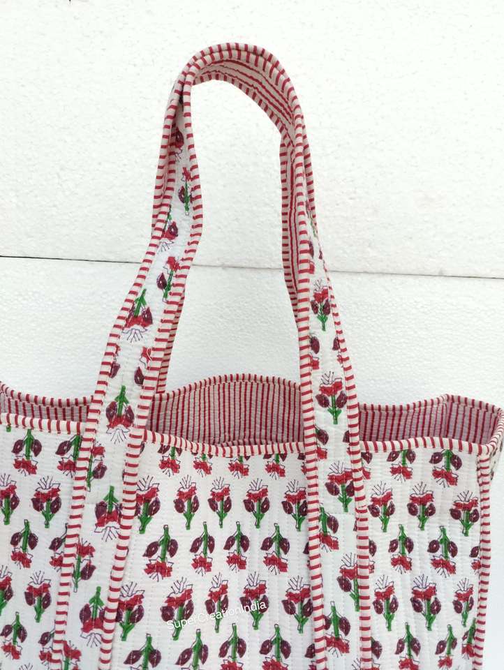 Hand Block Printed Indian Handmade Cotton Shopping Tote Bag Women Tote Bag Handmade Block Printed Quilted Shoulder Bag