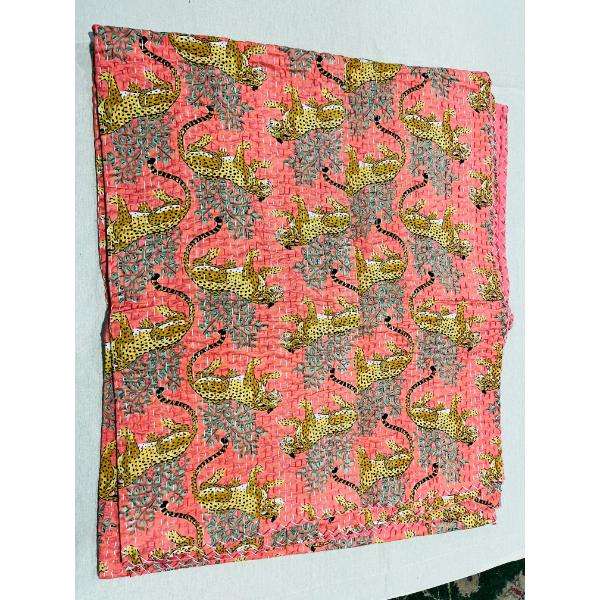 Hand Block Printed Kantha Cotton Bedspread Quilt Offering Cultural Textile Charm And Comfortable Fabric For Bedroom Living