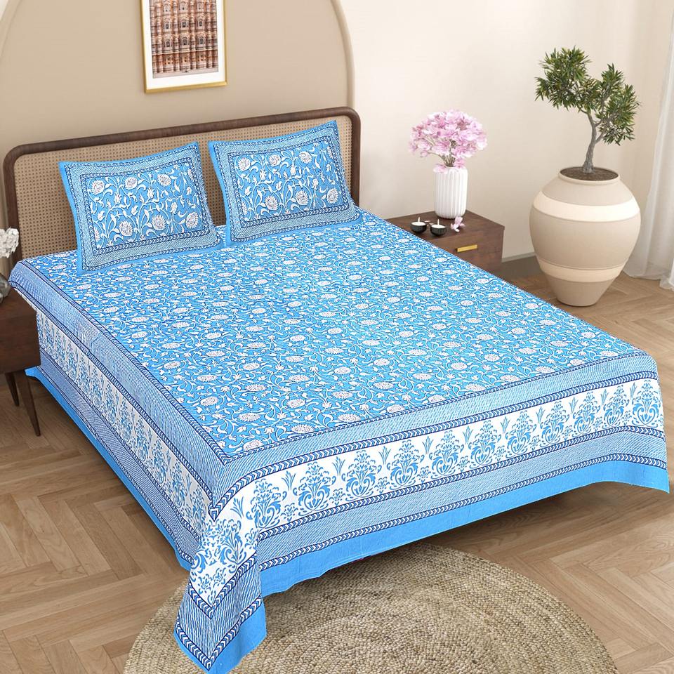 Hand Block Printed King Size Bed Sheets Handcrafted Modern Bedding Set Cotton Bedsheet and Pillow Cover Set Soft Border Design