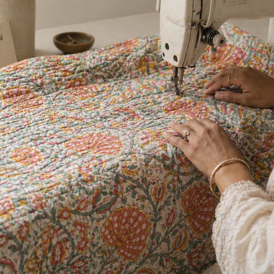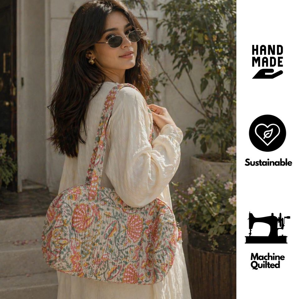 Hand Block Printed Mini Duffle Bag Quilted Cotton Boho Weekender Travel Bag Handmade Ethnic Overnight Gym Carry Stylish