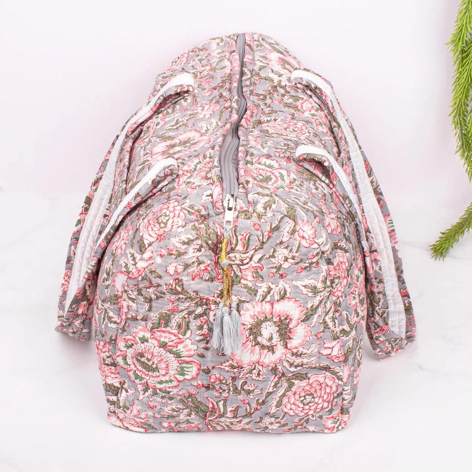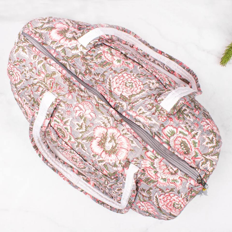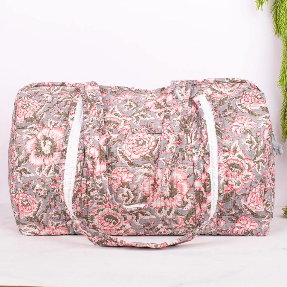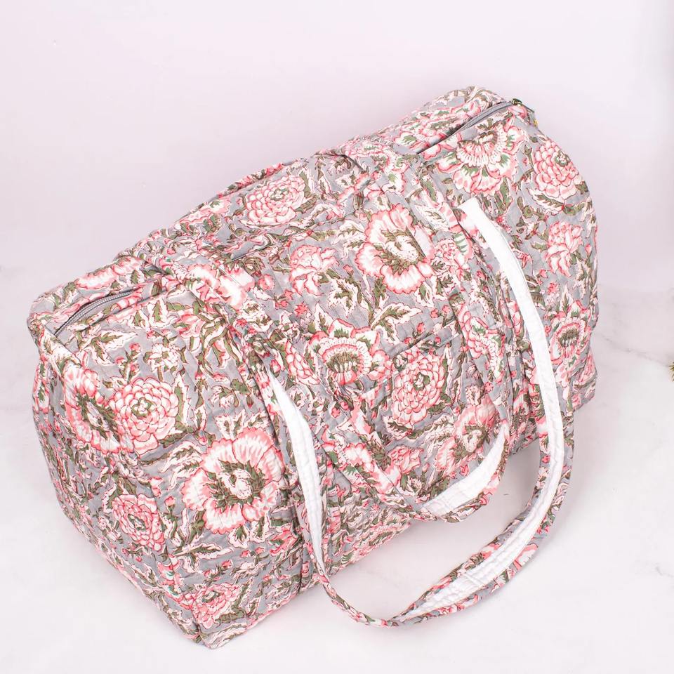 Hand Block Printed Quilted Cotton Duffle Bag Luxury Large Capacity Durable Eco-Friendly Weekender Travel Tote