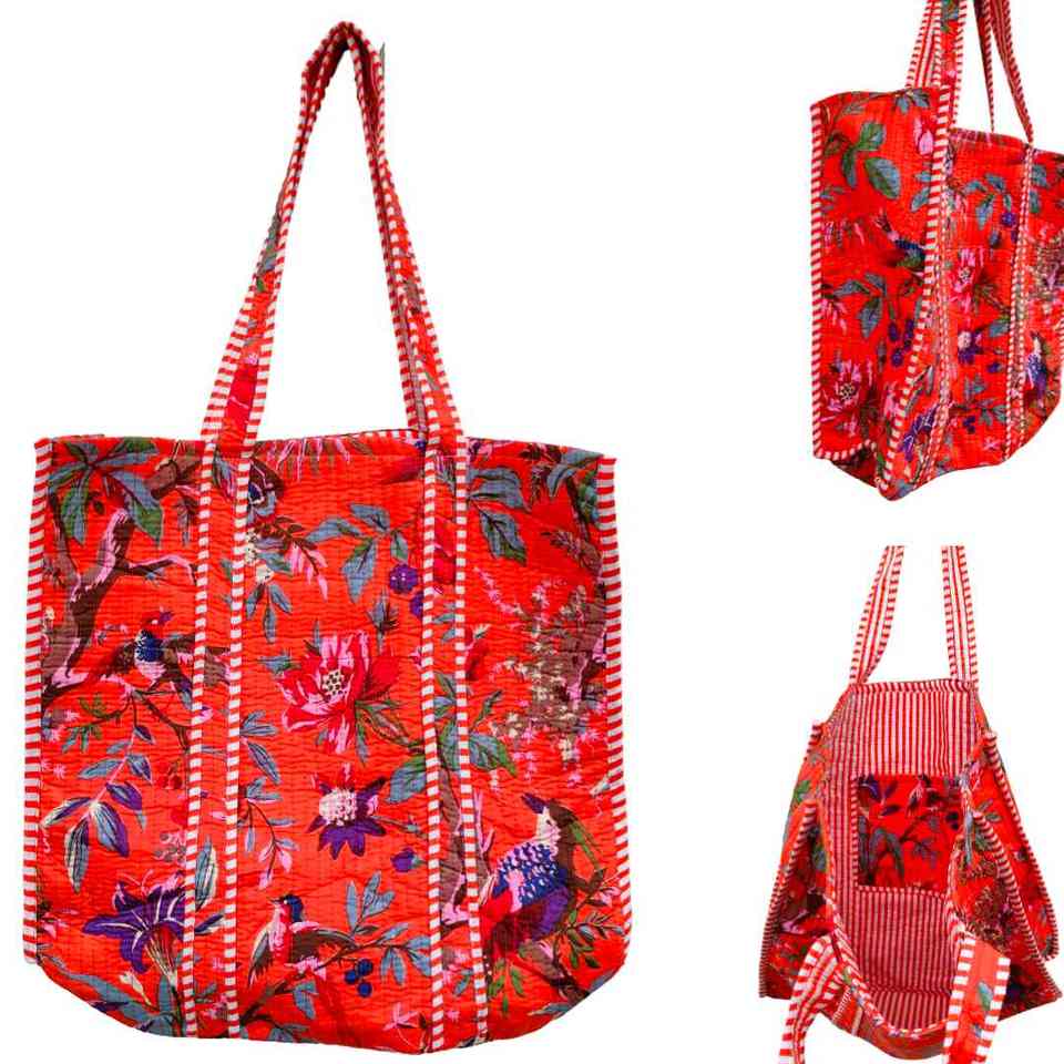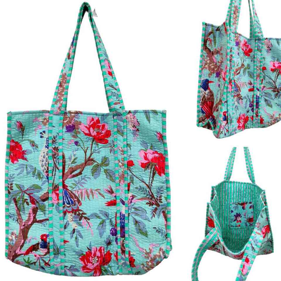 Hand Block Printed Quilted Cotton Tote Bag Eco-Friendly Mix Pattern Style Indian Shoulder for Women Handmade