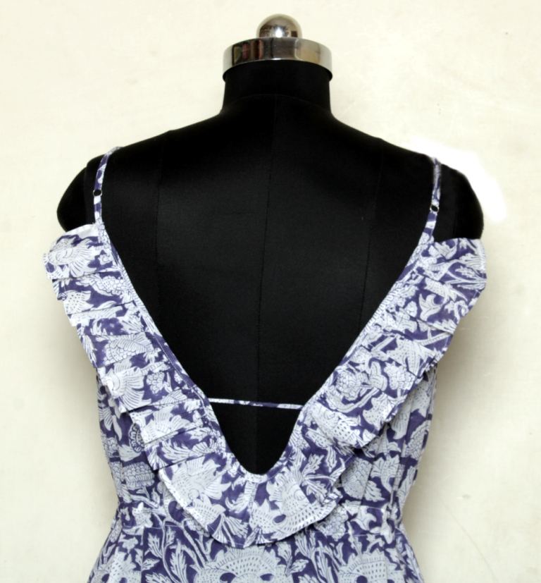 Hand Block Printed Women's Sleeveless Maxi Dress Bohemian Casual Style Handmade Indian Cotton Fabric Natural Long Length Dress