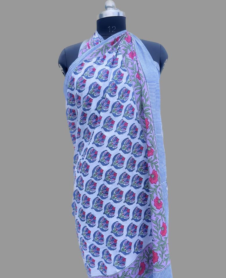 Hand Block Printed Zari Cotton Sarong Beach Wrap Pareo Large Sarong Cover up Soft Fabric Scarf Fashion Shawl Beach Sarong