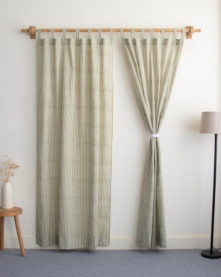 Hand Block Striped Printed Cotton Curtains Set Striped Design for Bedroom Door And Window Curtains