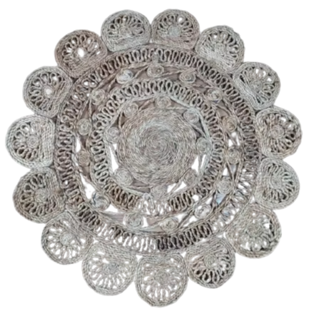 Hand-Braided Jute Mandala Rug - Round Natural Fiber Area Rug with Floral Pattern