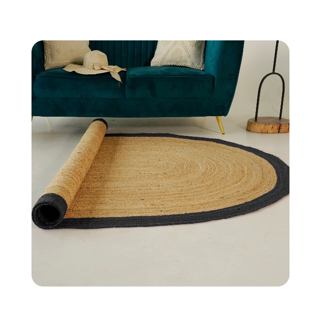 Large Luxury Seagrass Woven Rug for Teenagers Modern Style Hand Braided Oval Jute with Beige and Grey Border Area Rugs & Sets