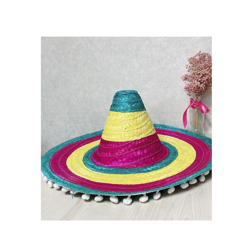 Hand Braided Seagrass Straw Panama Hat with Printed Pattern Pom Pom Edging Travel Daily Casual Event Party Beach Apparel Decor