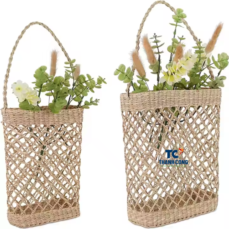 Hand Braided Woven Seagrass Wall Hanging Basket Multifunction Seagrass Decorative Basket Organizing Flowers