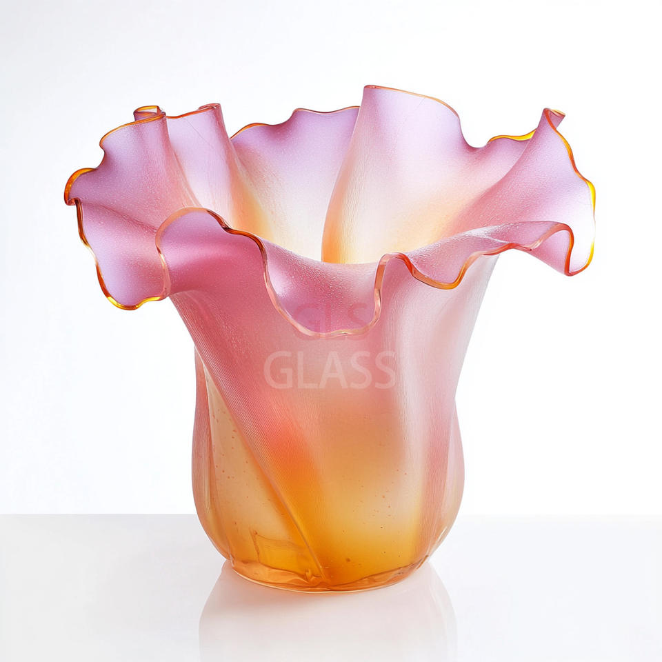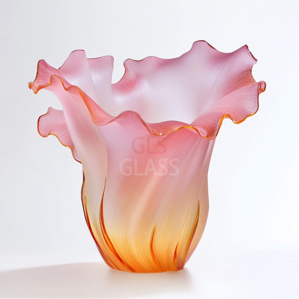 Hand-Carved Crystal Glass Petal Vase Art Deco Design Home Decor Ornament for Weddings and Bar Mitzvahs Tabletop Vase