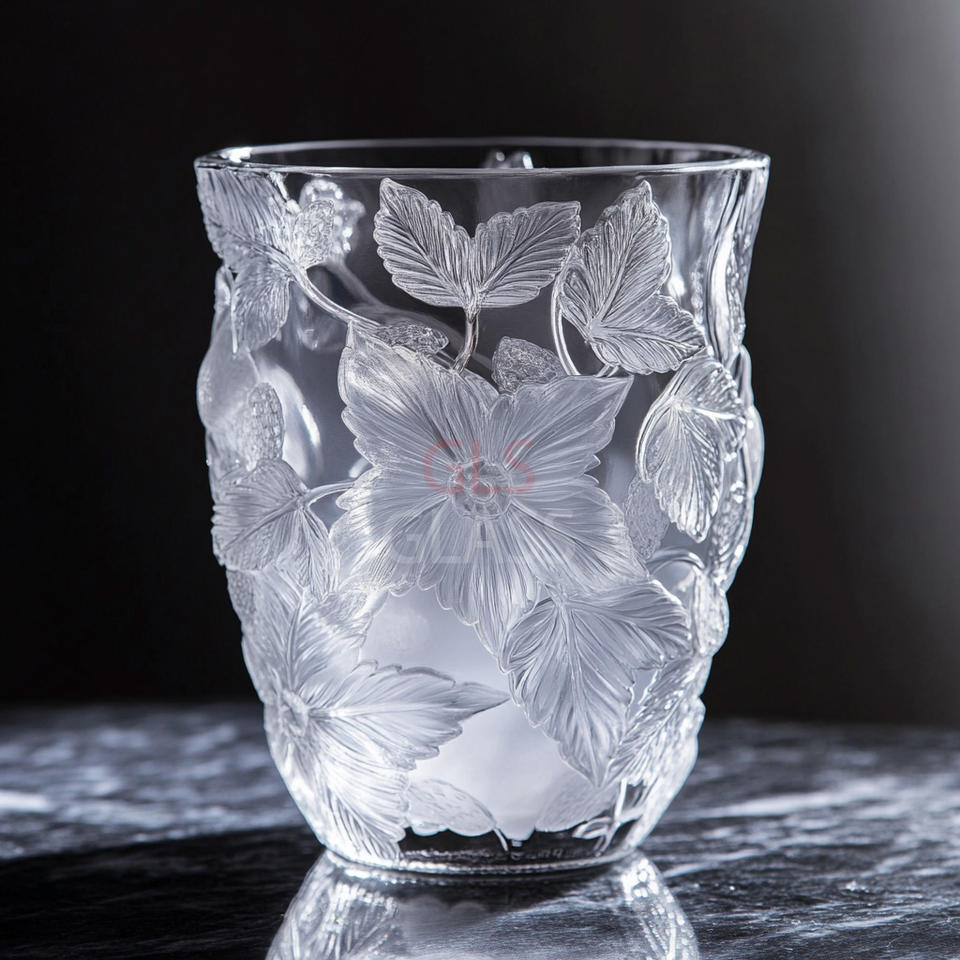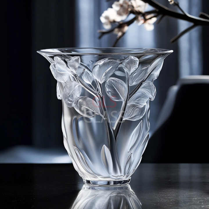 Hand Carved Crystal Glass Tulip Vase Art Deco Design for Wedding and Bar Mitzvah Tabletop Home Decor