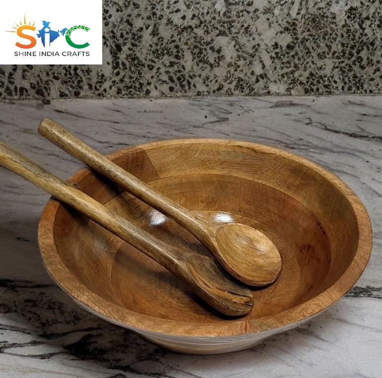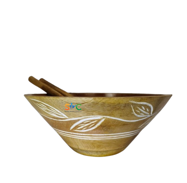 Hand Carved Eco-Friendly Serving Bowl Spoons Stunning Leaf Carving Mango Wood Customizable Color Size SHINE INDIA CRAFTS Gift