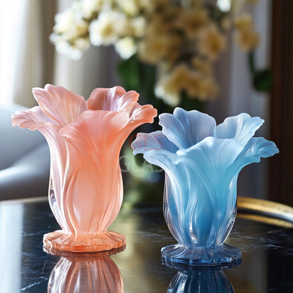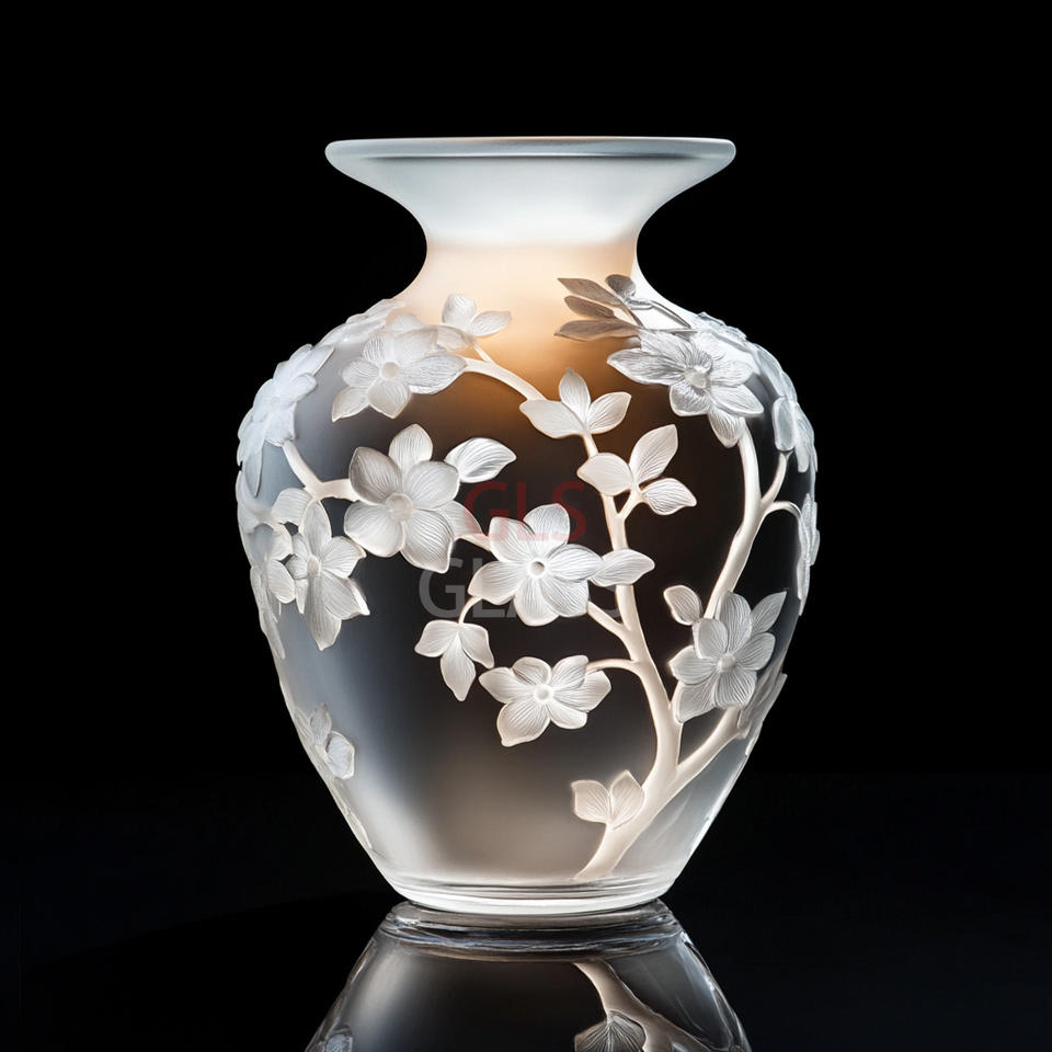 Hand Carved Home Decor Crystal Glass Leaf relief Vase