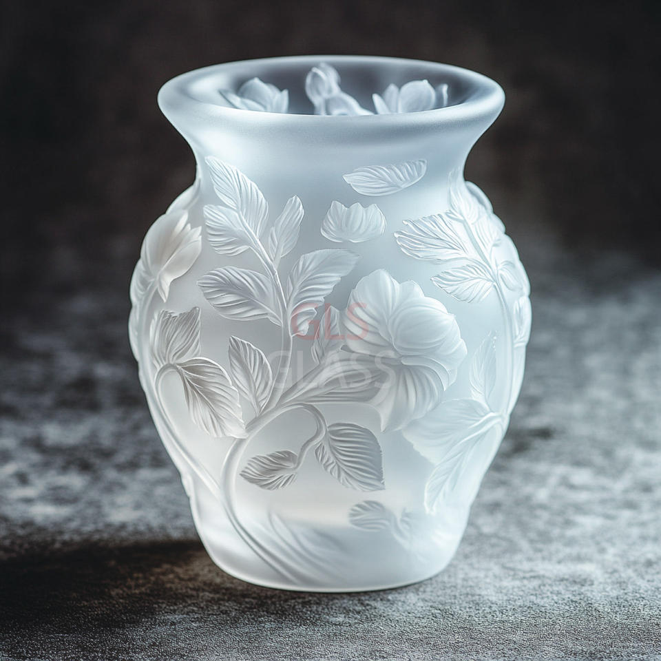 Hand Carved Home Decor Crystal Glass Leaf relief Vase
