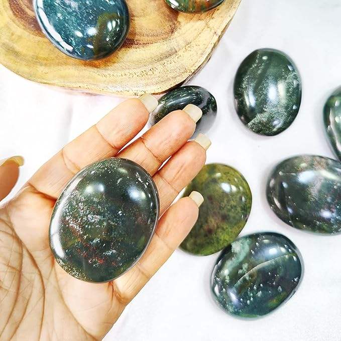 Hand-Carved Natural Bloodstone Palm Stone Crystal for Spiritual Healing & Chakra Cleansing Calming Meditation Technique