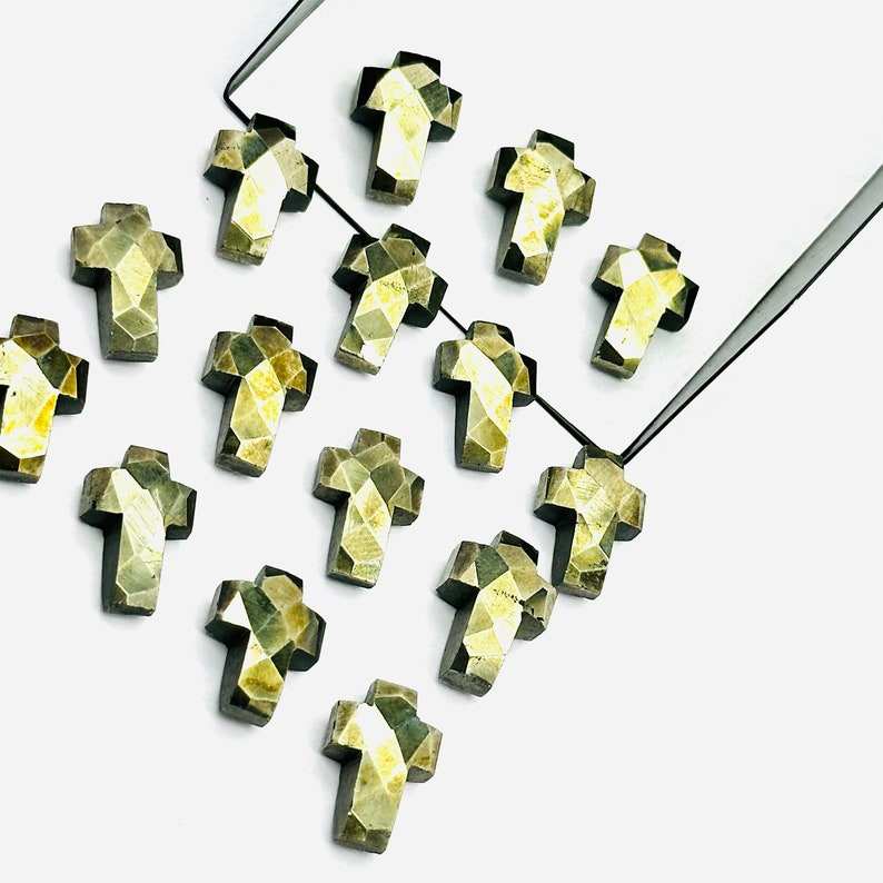 Hand Carved Natural Pyrite Cross Shape Beads 15x10mm Jewelry Making Charms Faceted Pyrite Energy Gemstones