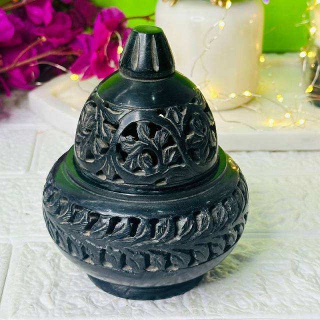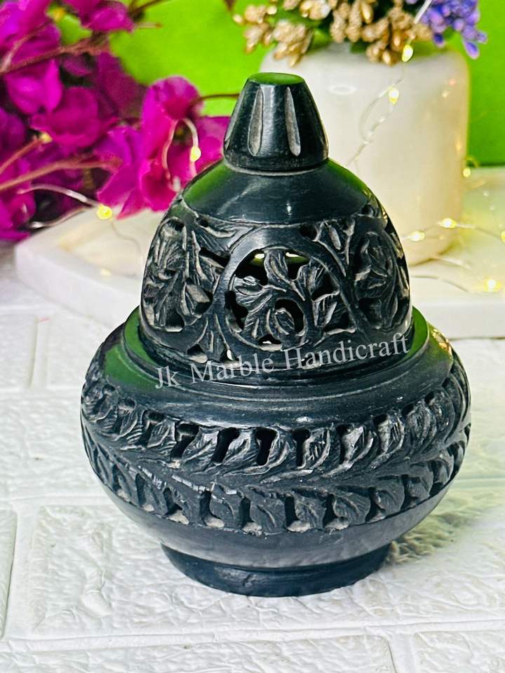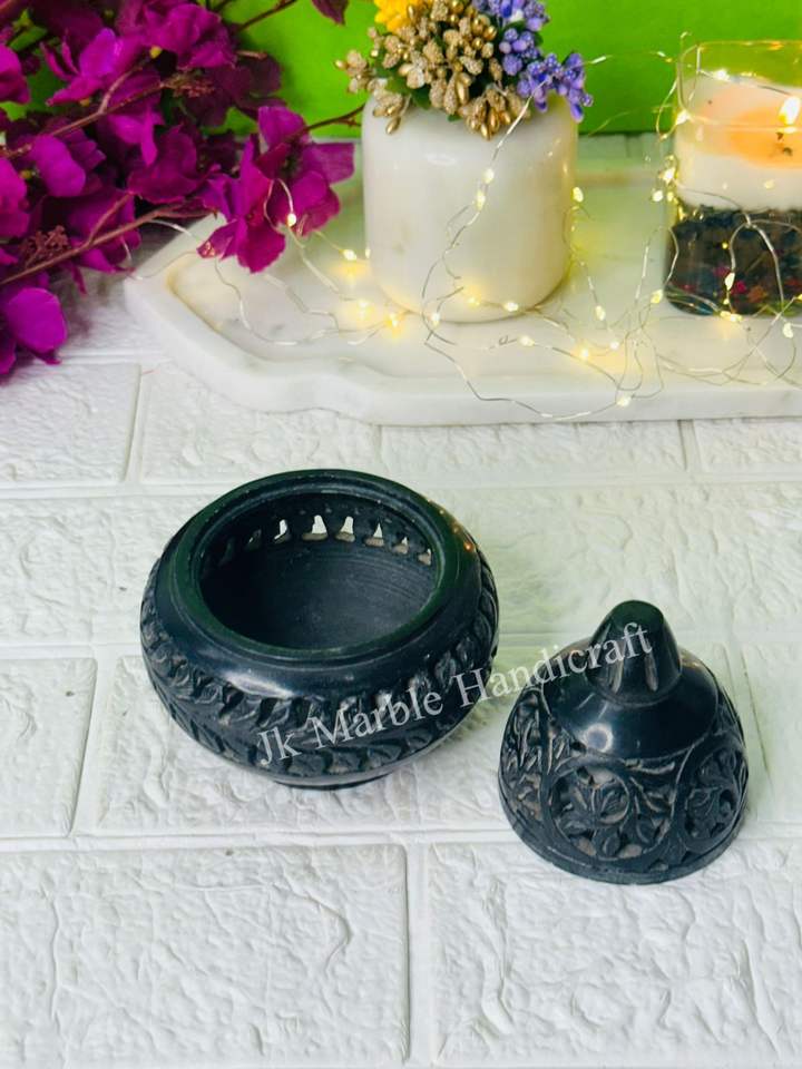 Hand-Carved Natural Soapstone Tea Light Holder High-Class Export Packing Beautiful Engraved Leaf Style Stone Craft