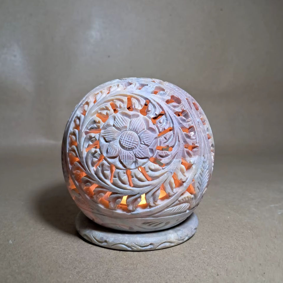 Hand-Carved Natural Soapstone Tea Light Holder Home Office Christmas Decor with Stone Candle Holders Lanterns & Candle Jars