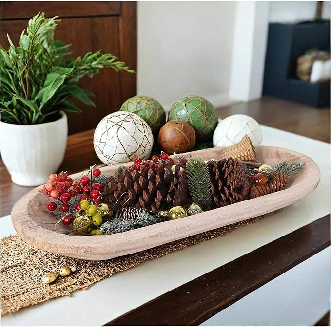 Hand-Carved Round Wooden Salad Bowl Eco-Friendly Customizable Design for Home Restaurant Hotel Use (21" Natural Color)