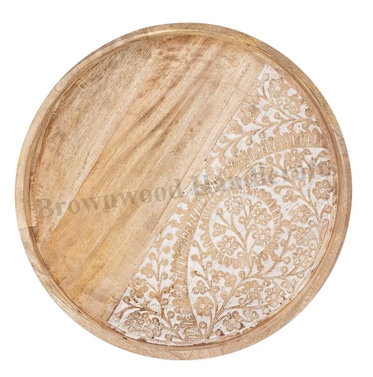 Wooden Hand Carved Serving Tray With HandlesProduct Name