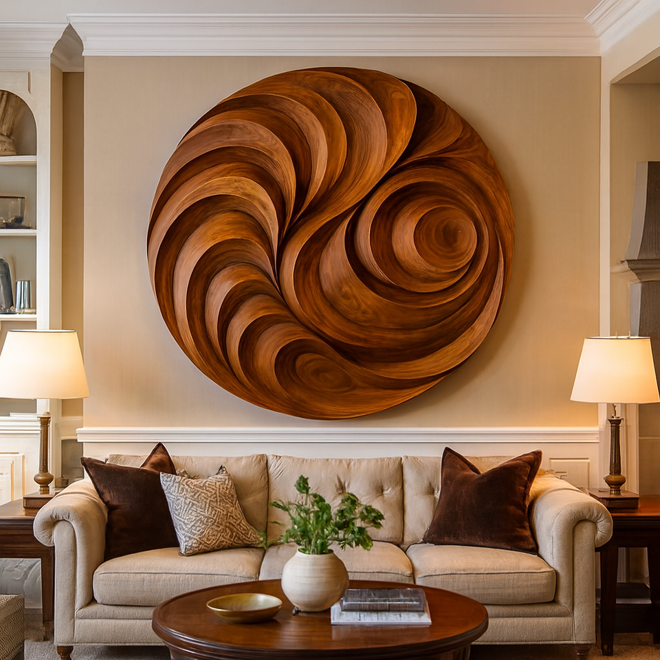 Hand Carved Solid Wood Sculpture Eco-Friendly Art Deco Wall Hanging Abstract Anniversary & Diwali Wedding Decor Wall Art