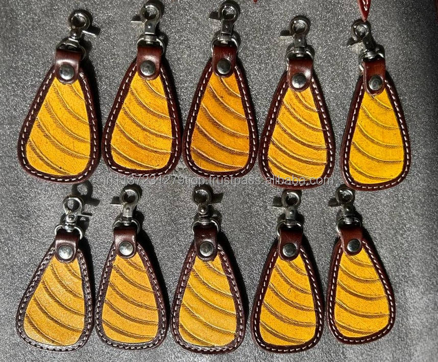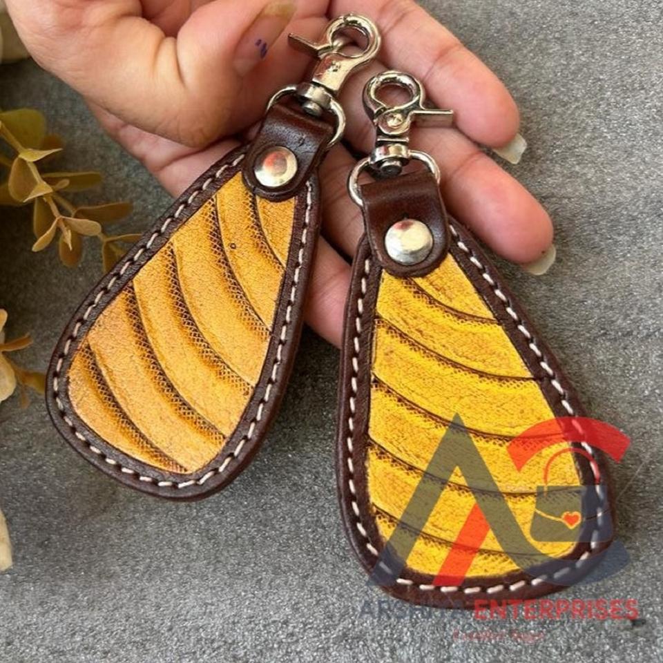 Hand Carved Tooled Leather Key Chains Cute Exotic Shape Leather Key Rings Tooled Leather Accessories Cute Key Chains for Unisex