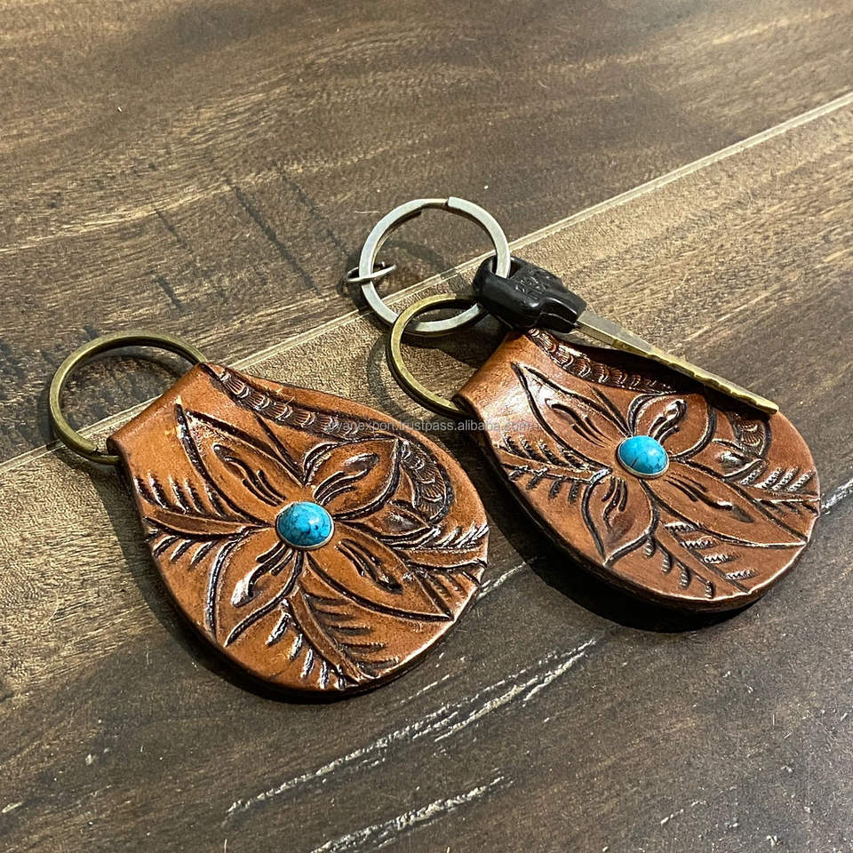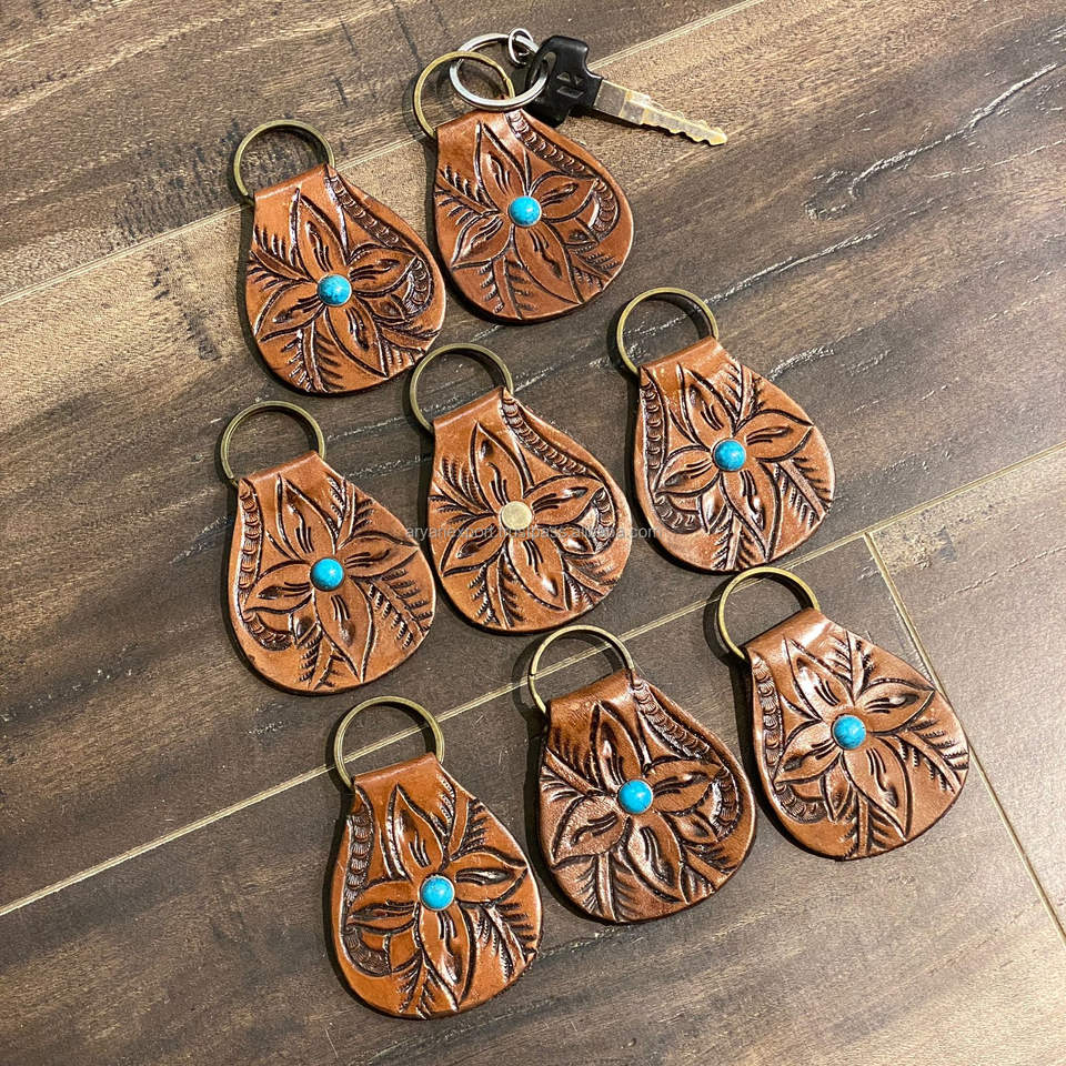 Hand Carved Tooled Leather Key Chains Cute Exotic Shape Leather Key Rings Tooled Leather Accessories Cute Key Chains for Unisex